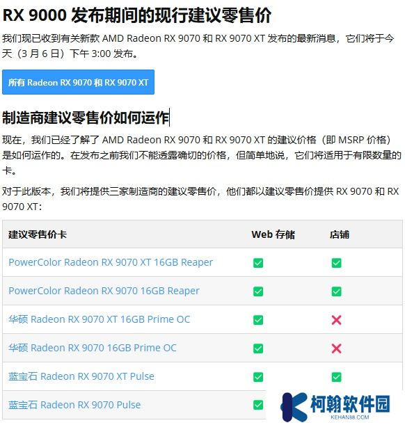 Inet.se 表示,首发型号中,撼讯 Reaper 系列、华硕 PRIME 系列、蓝宝石 PULSE 系列及讯景 XFX SWIFT 系列将按 MSRP 发售,但库存有限。